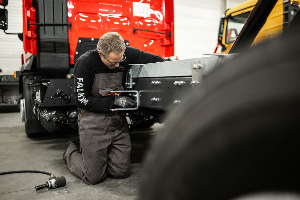 Als Mechanisch Monteur bij Falkom werk je aan de basis van elk bergingsvoertuig. Zodra het chassis binnenkomt, begin jij met het strippen ervan. Alles wat niet nodig is – van bekabeling tot luchtketels – wordt zorgvuldig verwijderd. Vervolgens kort je het chassis in tot de juiste lengte en start je met de opbouw. Je monteert het kiepframe, meet de tussenbalk op en last deze vakkundig vast. Daarna volgen de subframes: je meet, lijnt uit en monteert deze tot het geheel klopt.
