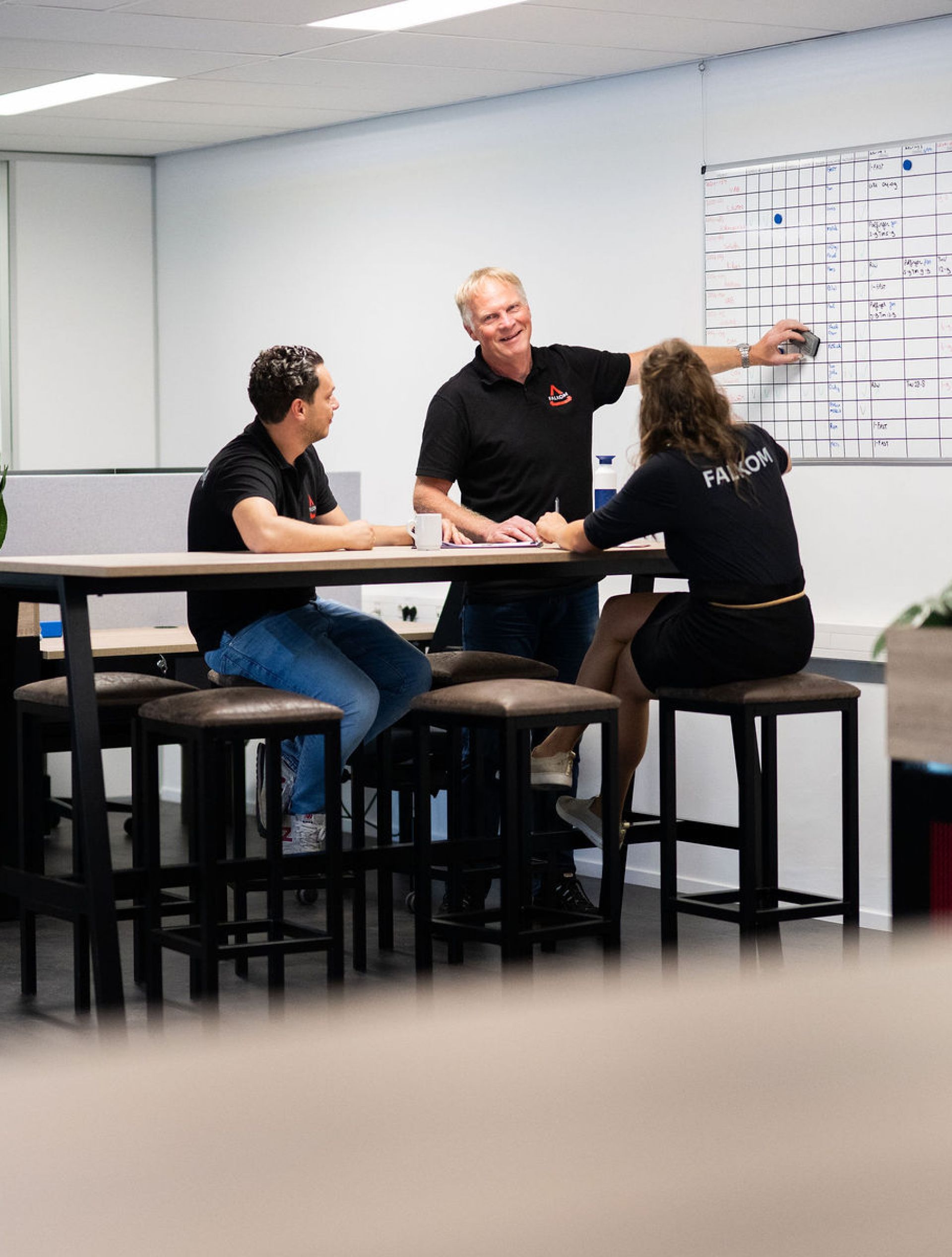 Bij Falkom op kantoor kom je te werken in een hecht en gedreven team van 9 collega’s. Ieder met zijn eigen functie en expertise. Dit zorgt ervoor dat we veel samenwerken, waardoor je soms ook taken van elkaar kunt oppakken en met elkaar kunt meekijken op verschillende gebieden. Het kleinschalige karakter zorgt voor een open en betrokken werkplek, met een gezellige sfeer, korte lijntjes en directe communicatie.