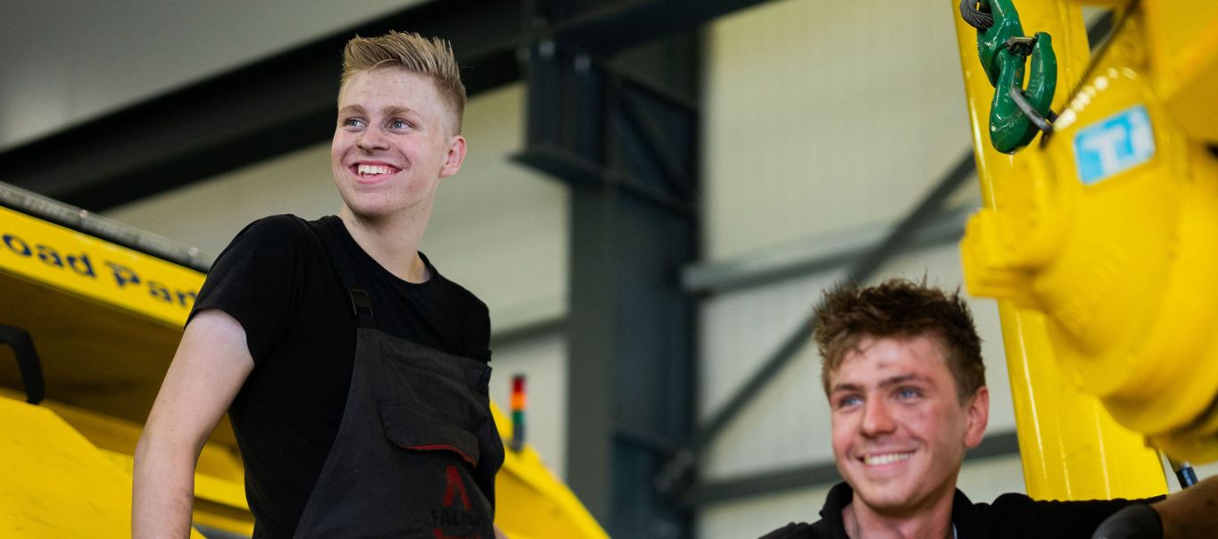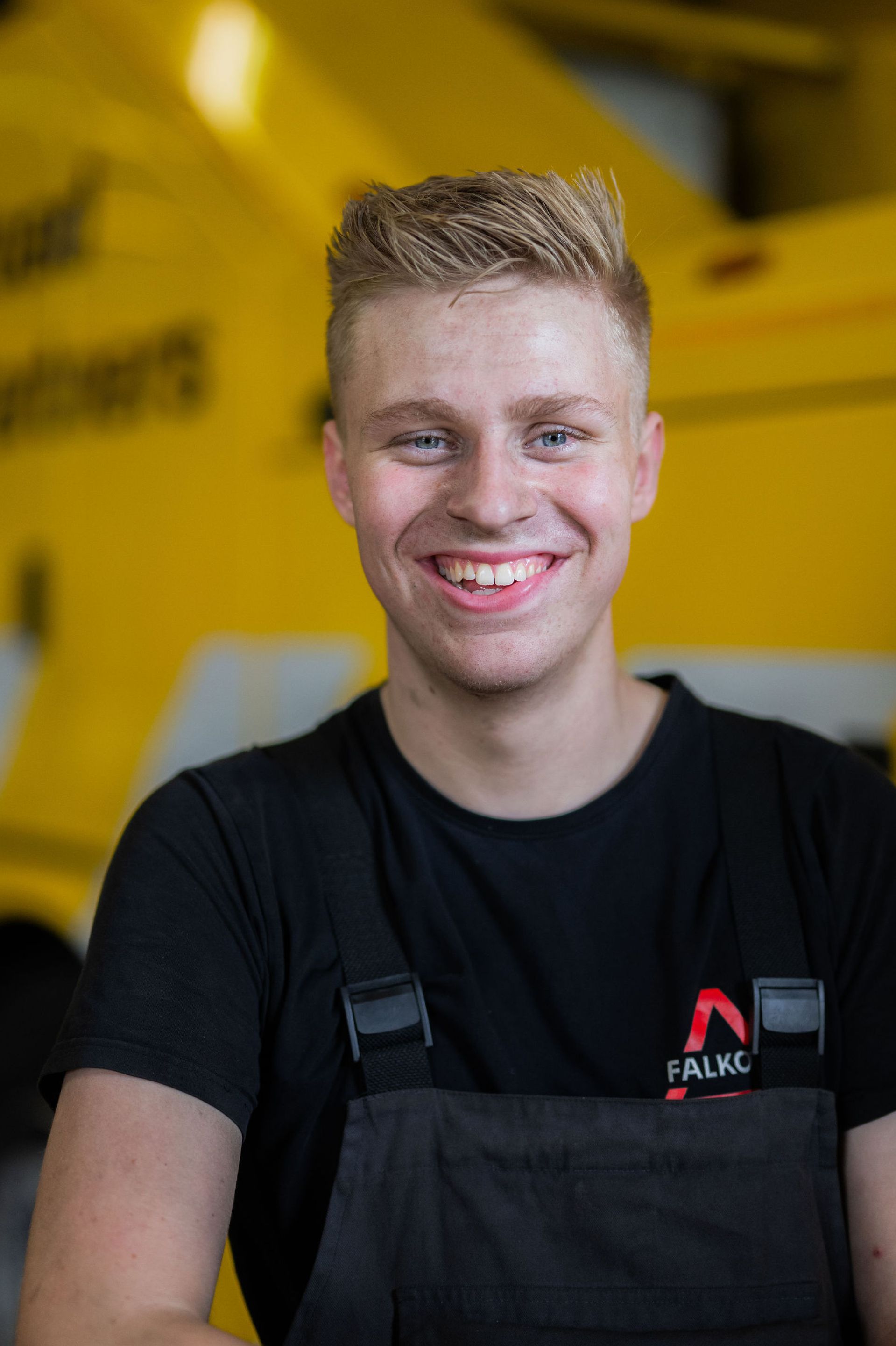 Wat ik later wilde worden wist ik eigenlijk niet zo goed, maar ik heb altijd al graag met mijn handen gewerkt. Voor school moest ik stage lopen en ik dacht meteen aan iets technisch. Zo kwam ik uit bij het beroep carrosseriebouwer. Tijdens het zoeken naar een stage kwam ik bij Falkom terecht. Ik mocht er 2 weken stagelopen. Eerst een week in de reparatie en daarna een week bij team rood. Dit beviel erg goed. Sinds september vorig jaar volg ik daarom de BBL-opleiding Mechatronica en werk ik vier dagen per week bij Falkom in het reparatieteam.